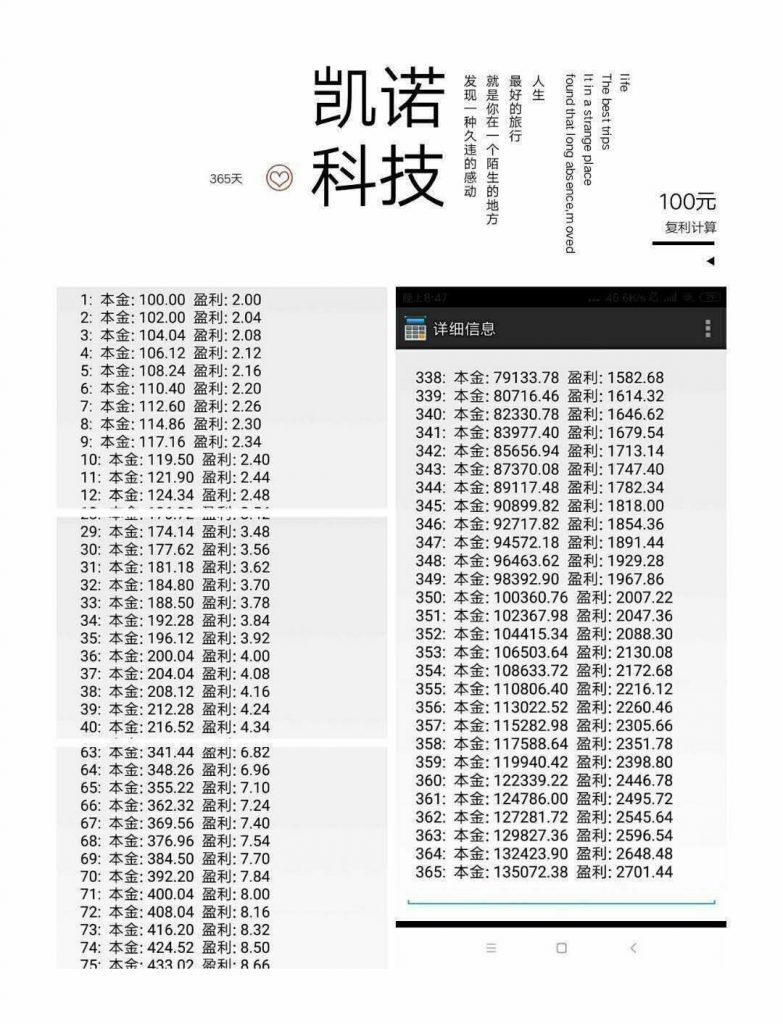 凱諾科技投資100,每天復(fù)投,一年后,你的日收入是2700,這樣的收入滿意嗎?那就注冊(cè)下載APP,購(gòu)買100個(gè)機(jī)器人給我們掙錢的