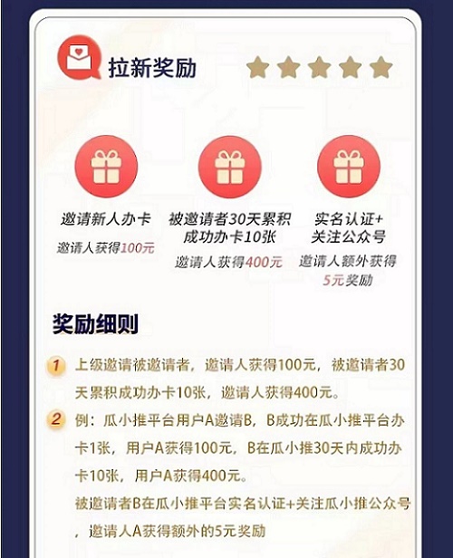 A代理邀請B代理,B代理批卡獎勵A(yù)代理100元,B代理30天內(nèi)辦理10張獎勵A(yù)400元。p3v菜譜美食網(wǎng)-眾歸云 - 24小時不關(guān)機的云端電腦_云主機_VPS掛機寶_免費掛機寶_0.1元試用,3-5元月租服務(wù)器提供