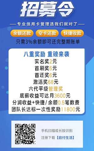 啟付生活一站式信用卡管理平臺-頂級政策誠邀各大團(tuán)隊