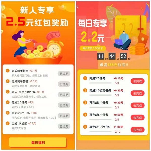 掃碼注冊下載安裝賞幫賺app,登錄后完善下信息開始接單做任務,app首頁有新人福利2.5元,可以接快審任務(一小時內審核)迅速的拿到傭金。 除此之外,還有每日專享2.2元的任務獎勵,只要每天完成一定量的任務就能領到獎勵。o1s菜譜美食網-眾歸云 - 24小時不關機的云端電腦_云主機_VPS掛機寶_免費掛機寶_0.1元試用,3-5元月租服務器提供