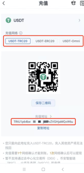 3、以 USDT 為例,選擇充值網(wǎng)絡(luò),保存二維碼或者復(fù)制下方充值地址。rIZ菜譜美食網(wǎng)-眾歸云 - 24小時不關(guān)機的云端電腦_云主機_VPS掛機寶_免費掛機寶_0.1元試用,3-5元月租服務(wù)器提供