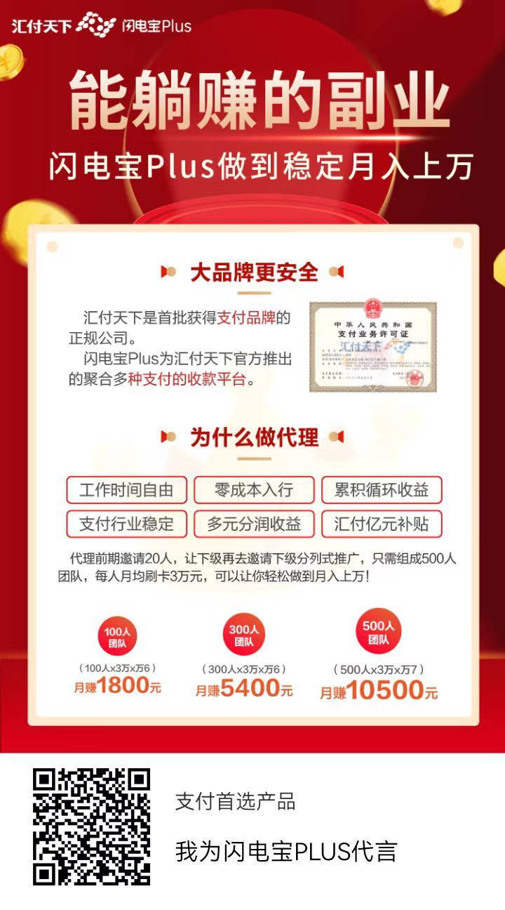 閃電寶plus,是由匯付全國推出的一款多元化收款A(yù)PP。不只包含了多種收款方法(MPOS、移動(dòng)收款、刷 臉收款、碰一碰),還能輕松完成辦卡掙錢、信用卡積分兌換等多種服務(wù)。除此以外,低門檻成為署理 ,終身持續(xù)性收入。