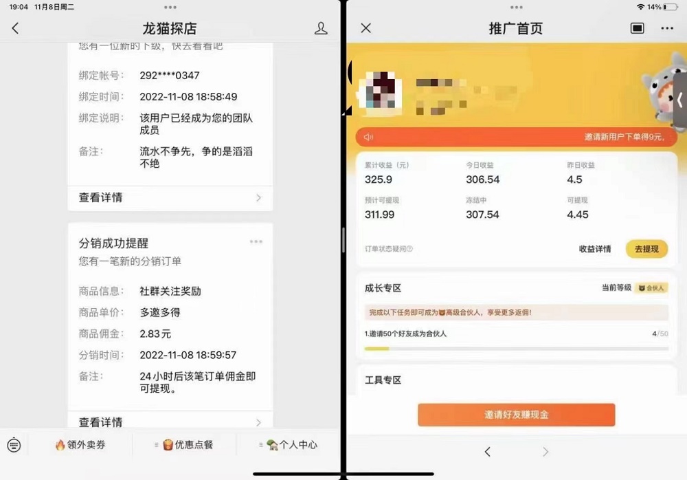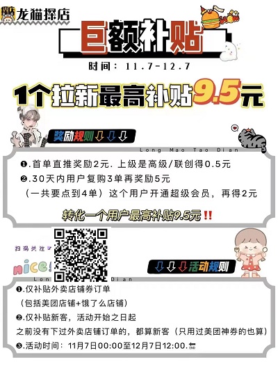 當(dāng)然龍貓?zhí)降暝趺磿?huì)只有一個(gè)活動(dòng)呢,除了社群拉新外,還有一個(gè)巨額補(bǔ)貼,拉新一個(gè)最高9.5元,來看看介紹圖: