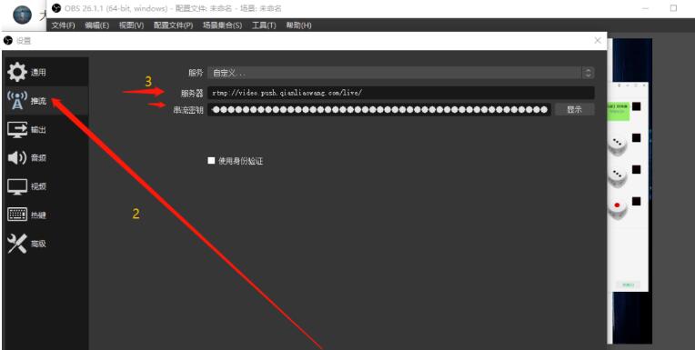 3、“OBS”是全球最出名的直播推流工具,打開(kāi)OBS,設(shè)置,推流,填寫上一步獲取到的直播推流碼,就能開(kāi)始直播。aED菜譜美食網(wǎng)-眾歸云 - 24小時(shí)不關(guān)機(jī)的云端電腦_云主機(jī)_VPS掛機(jī)寶_免費(fèi)掛機(jī)寶_0.1元試用,3-5元月租服務(wù)器提供