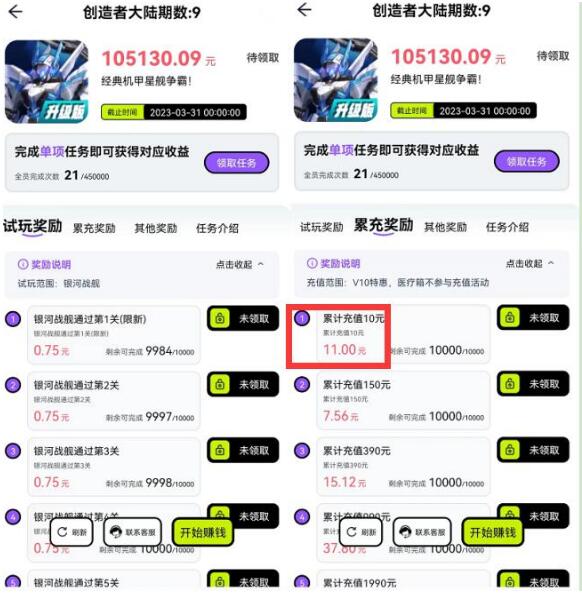 部分項(xiàng)目是存在充值必賺的,比如馬上賺的高反板塊,就好些項(xiàng)目充值10元返11+,這些項(xiàng)目其實(shí)可以看做是平臺(tái)誘餌放水,如果繼續(xù)充值一般不劃算,但是只做首充基本會(huì)有5元左右的利潤(rùn),大家看好就上適可而止就行!