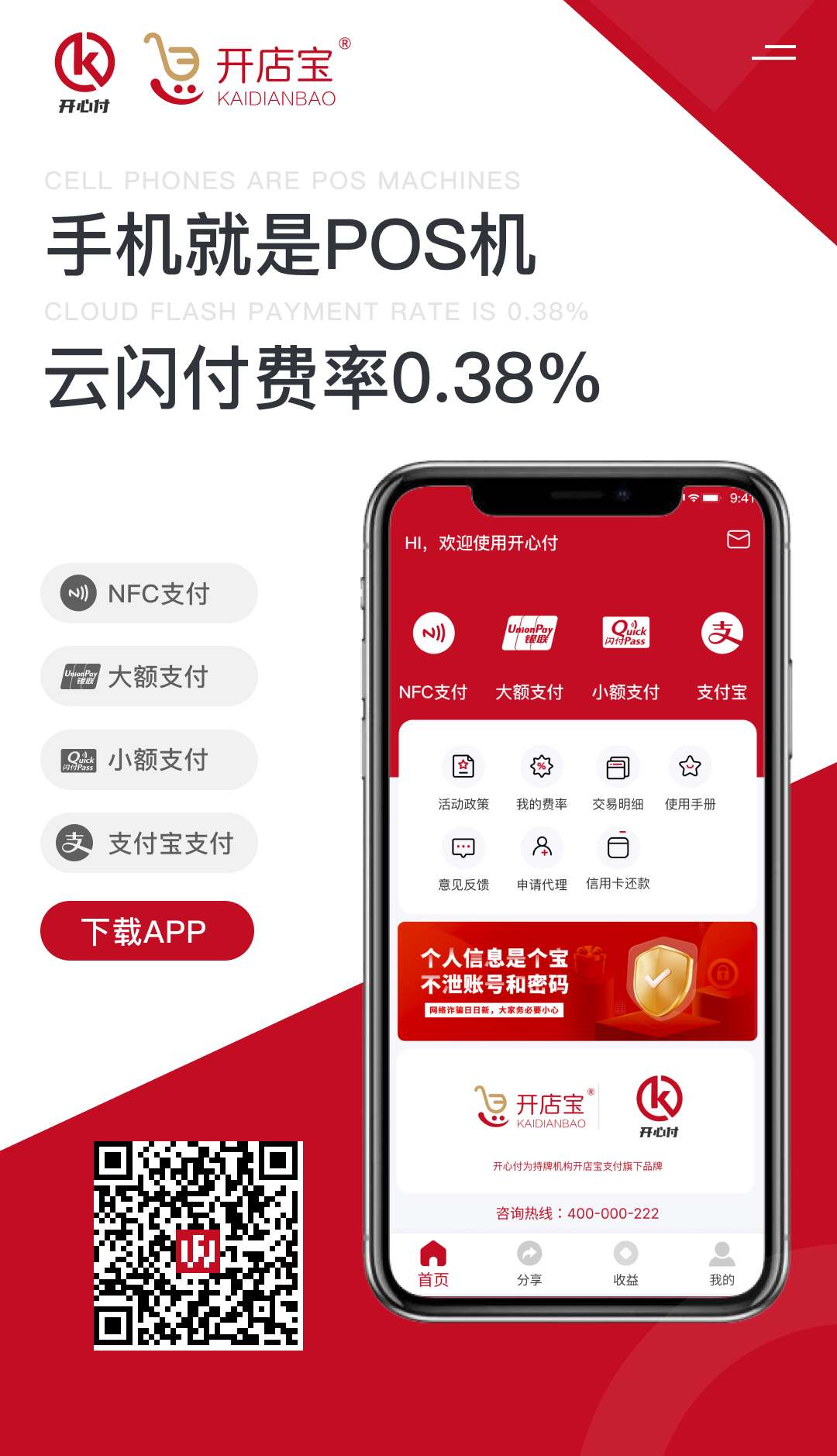 開心付APP手機(jī)POS是開店寶支付服務(wù)有限公司旗下品牌,