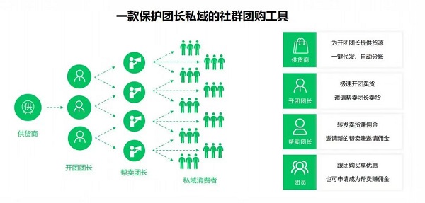 其次,團(tuán)團(tuán)團(tuán)項(xiàng)目沒(méi)有費(fèi)用和門檻,讓每個(gè)人都可以參與賣貨。此外,公司選品庫(kù)、一鍵開(kāi)團(tuán)和完善的售后服務(wù)提供了便利和可靠的銷售平臺(tái)。這樣的設(shè)置吸引了微商團(tuán)隊(duì)、淘客、代購(gòu)、線下門店、淘寶店主、自媒體和主播等不同身份的轉(zhuǎn)型者加入。