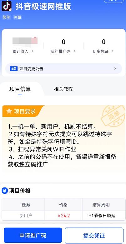 通過任推邦APP首頁找到【抖音極速版網推】項目,進行報備可以獲得獨立的邀請碼。6RX菜譜美食網-眾歸云 - 24小時不關機的云端電腦_云主機_VPS掛機寶_免費掛機寶_0.1元試用,3-5元月租服務器提供
