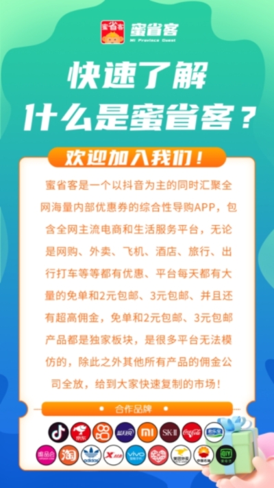 蜜省客APP(0擼還返利)——是與以往完全不同的抖客+淘客app!2023全新模式。主打:帶貨高補(bǔ)貼,傭金更高,獨立后臺管理,模式更好,深受各位帶貨和帶隊團(tuán)隊長喜愛,蜜省客是公認(rèn)的返利最好用的軟件。注冊即可享受高補(bǔ)貼+0擼還有返利+撿漏等帶貨新體驗。蜜省客原始邀請碼008800,教你做團(tuán)隊。