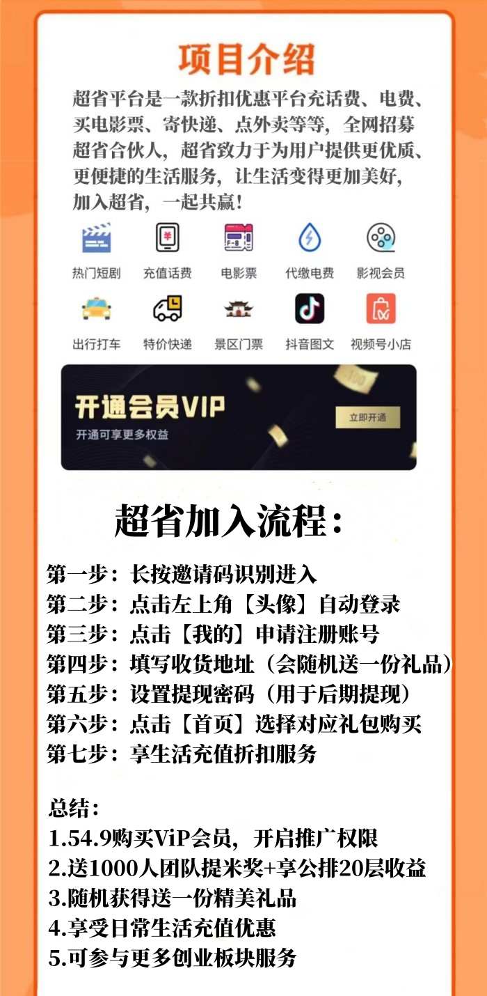 超省59.9是折扣優(yōu)惠平臺(tái)充話費(fèi)、電費(fèi)、買電影票、寄快遞、點(diǎn)外賣等等,全網(wǎng)招募超省合伙人,加入超省,一起共贏!!