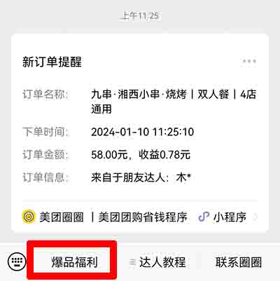 當(dāng)我們要買團(tuán)購(gòu)的時(shí)候呢,就直接從美團(tuán)圈圈公眾號(hào)進(jìn)入(注冊(cè)時(shí)已經(jīng)關(guān)注了),然后點(diǎn)擊爆品福利,即可進(jìn)入團(tuán)購(gòu)后臺(tái),我們就可以在上面去挑選自己喜歡的團(tuán)購(gòu)了,每個(gè)團(tuán)購(gòu)信息都會(huì)有傭金的提示,大家下單后即可獲取該訂單的傭金的。當(dāng)傭金有50元時(shí)即可體線到自己的美團(tuán)賬號(hào)了,體線是立馬到賬的。