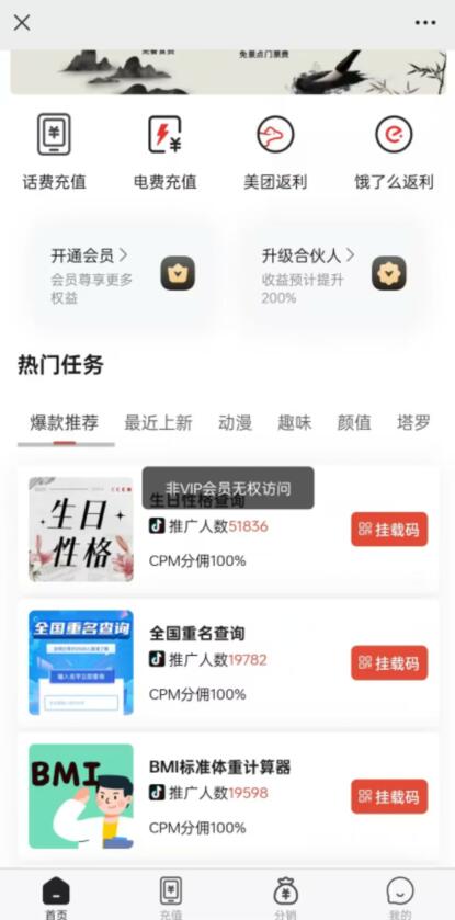 其實(shí)星火優(yōu)選為什么說是適合做團(tuán)隊呢?因?yàn)檫@項目本質(zhì)上是做分銷做銷售推廣,所以如果你做不了團(tuán)隊,基本上也無法通過星火優(yōu)選掙米(至于團(tuán)隊收益賺不掙米另說),星火優(yōu)選目前里面有的玩法就是電費(fèi)、話費(fèi)充值銷售、美團(tuán)餓了么外賣優(yōu)惠券,曝光抖音小程序的掛載掙米,說實(shí)話這幾個都是需要有流量你得找到人去使用才有收益的,至于說自用同類軟件實(shí)在太多了。j2E菜譜美食網(wǎng)-眾歸云 - 24小時不關(guān)機(jī)的云端電腦_云主機(jī)_VPS掛機(jī)寶_免費(fèi)掛機(jī)寶_0.1元試用,3-5元月租服務(wù)器提供