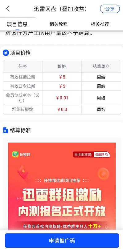 如果是二級渠道,基本上就是3-4元的拉新傭金,并非沒有其他收益;而如果是任推邦的一級渠道,拉新單價是5元,而且不僅僅是有拉新收益,畢竟迅雷新用戶現(xiàn)在未必比例很高,所以不限新老用戶這邊都有40%會員開通分成而且是持續(xù)180天鎖定反復多次結(jié)算,另外可以申請創(chuàng)建迅雷群組,用戶進行資源轉(zhuǎn)存和播放分別可以獲得0.3元每次的獎勵(每個用戶每天一次,就是0.6元最多),甚至這邊還可以在快手渠道加白進行小程序掛載,這些無論是價格傭金還是權(quán)限,都是其他二級渠道所沒有的,所以如果大家希望通過迅雷網(wǎng)盤拉新掙米,小編經(jīng)歷了海選和測試,任推邦是唯一值得操作的渠道,大家注冊之后首頁找到迅雷網(wǎng)盤然后進行申請報備審核就可以開始操作掙米了,迅雷任務里面有具體的申請和實操教學一定要仔細查閱哦!39n菜譜美食網(wǎng)-眾歸云 - 24小時不關(guān)機的云端電腦_云主機_VPS掛機寶_免費掛機寶_0.1元試用,3-5元月租服務器提供