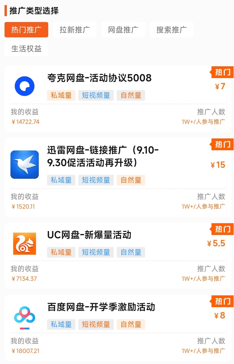 推廣價(jià)格,顯示收益,不同的網(wǎng)盤(pán)推廣價(jià)格不同,只要是當(dāng)天第一個(gè)點(diǎn)擊保存你的鏈接那么轉(zhuǎn)存收益就是你的,拉新就是新用戶(hù)注冊(cè)第一個(gè)點(diǎn)擊你的鏈接那么你就有拉新收益。xCr菜譜美食網(wǎng)-眾歸云 - 24小時(shí)不關(guān)機(jī)的云端電腦_云主機(jī)_VPS掛機(jī)寶_免費(fèi)掛機(jī)寶_0.1元試用,3-5元月租服務(wù)器提供